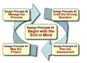 “Project planning is organised according to five design principles displayed to the right. Scroll over the image at right for an introduction to each principle, or click to learn in depth about each principle. In addition, each design principle is supported by a set of resources and advice from expert PBL teachers. You can find these links on the left of each page.”