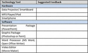 As a group, using the empty form below, brainstorm what enhancements the technology tools identified in this table can bring to the teaching process: